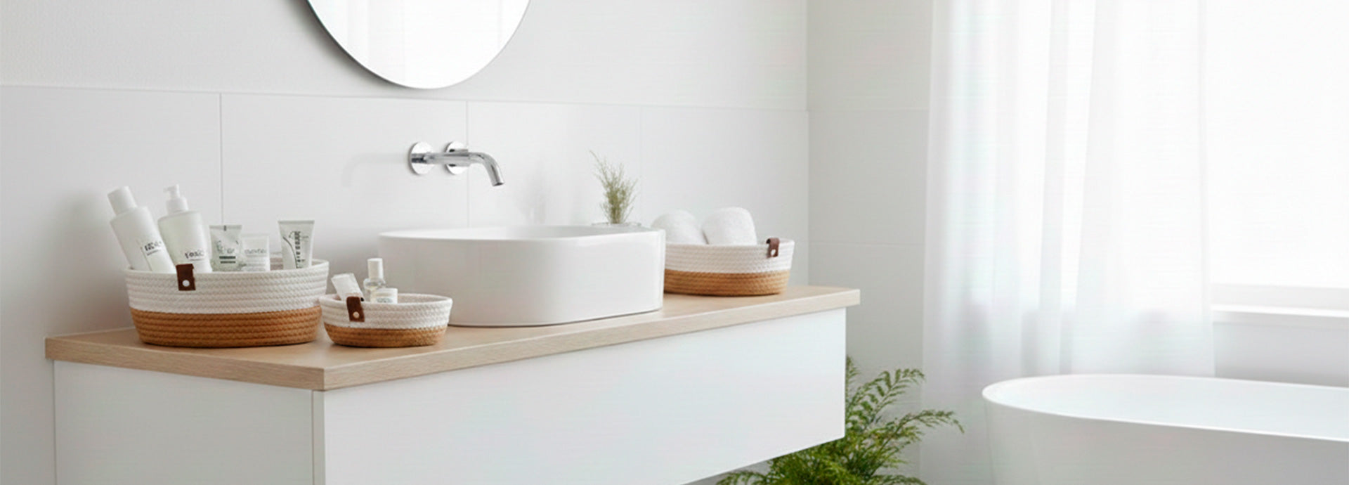 Conjunto de 3 Cestos COTTONI LINE Branco e Natural