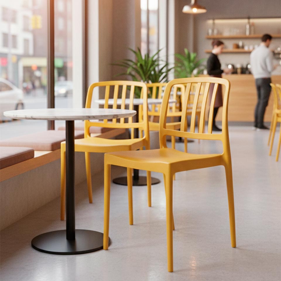 Redefina o conceito de versatilidade com a Cadeira URBIS: a fusão perfeita entre o clássico industrial e a funcionalidade moderna. Com o seu encosto icónico de ripas verticais, esta peça é a solução definitiva para quem procura um design marcante que se adapta a qualquer cenário. Leve, empilhável e surpreendentemente resistente, a URBIS é a escolha ideal para transformar salas de jantar, escritórios ou espaços comerciais num manifesto de bom gosto e sobriedade.