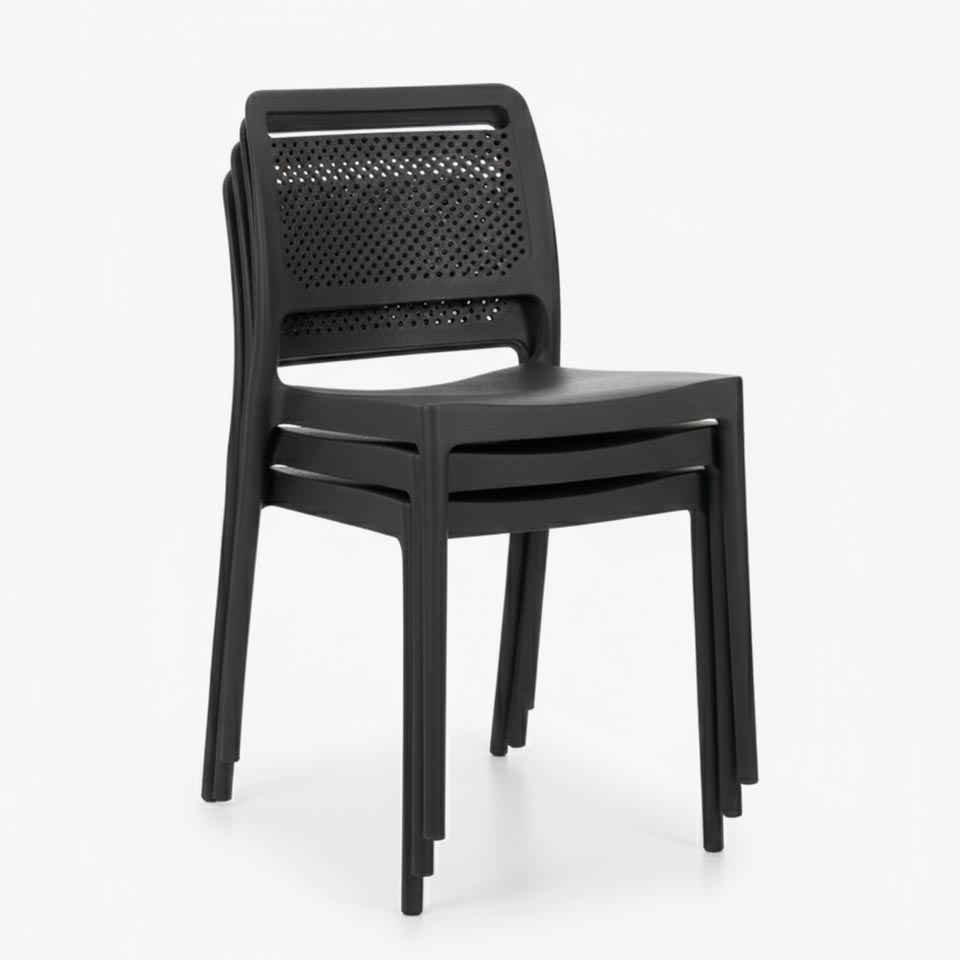 Cadeira moderna de design minimalista, leve e resistente, perfeita para sala de jantar, cozinha ou espaços exteriores. O encosto perfurado garante maior conforto e ventilação, enquanto a estrutura robusta assegura estabilidade e durabilidade no dia a dia. Uma solução prática, versátil e fácil de integrar em qualquer decoração contemporânea.