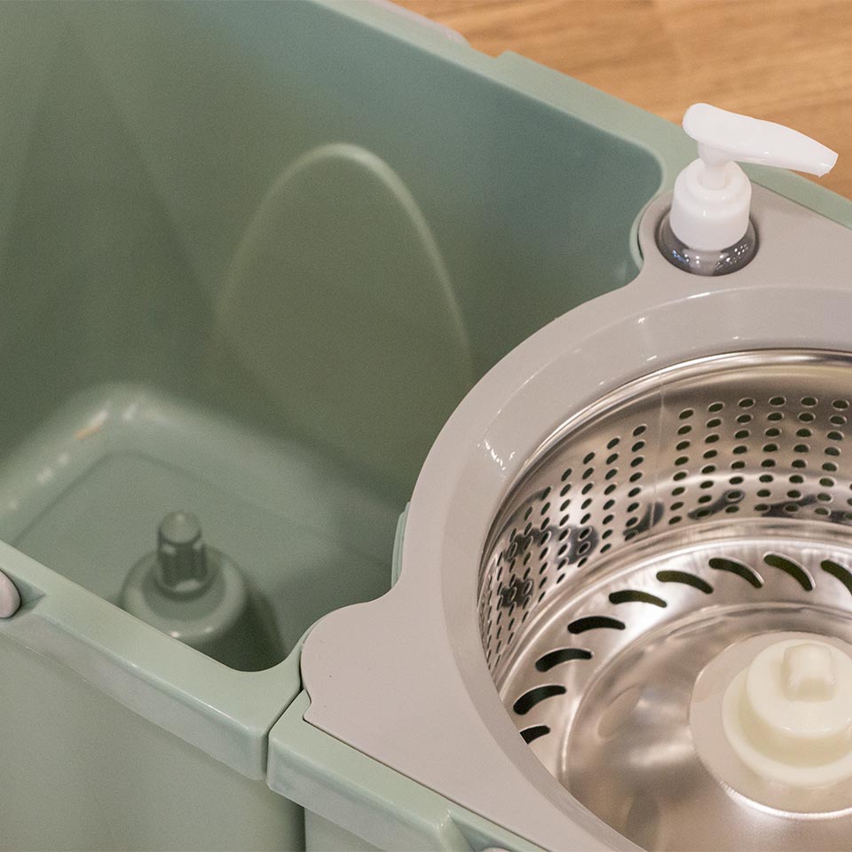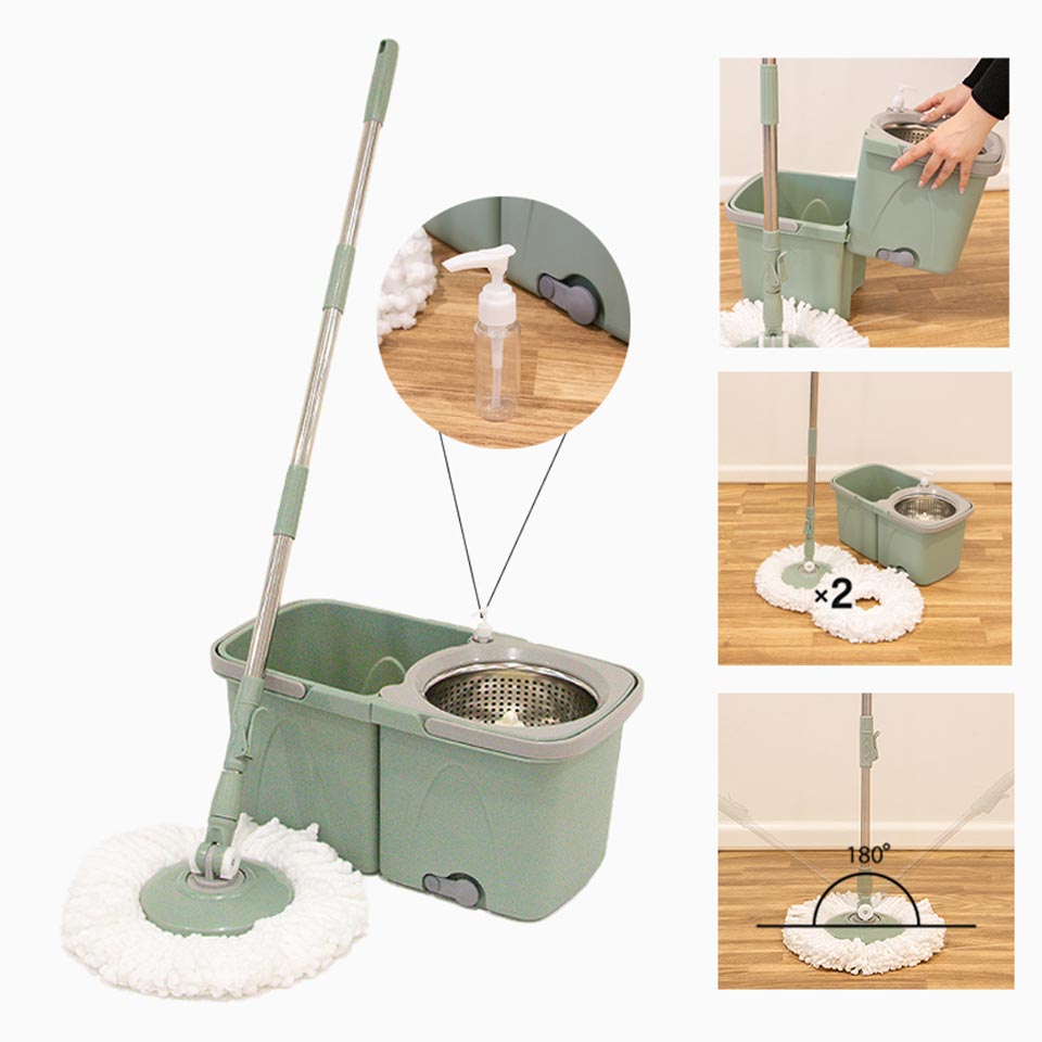 Specifications: Bucket and rotating mop set made of polypropylene, ABS plastic, and stainless steel