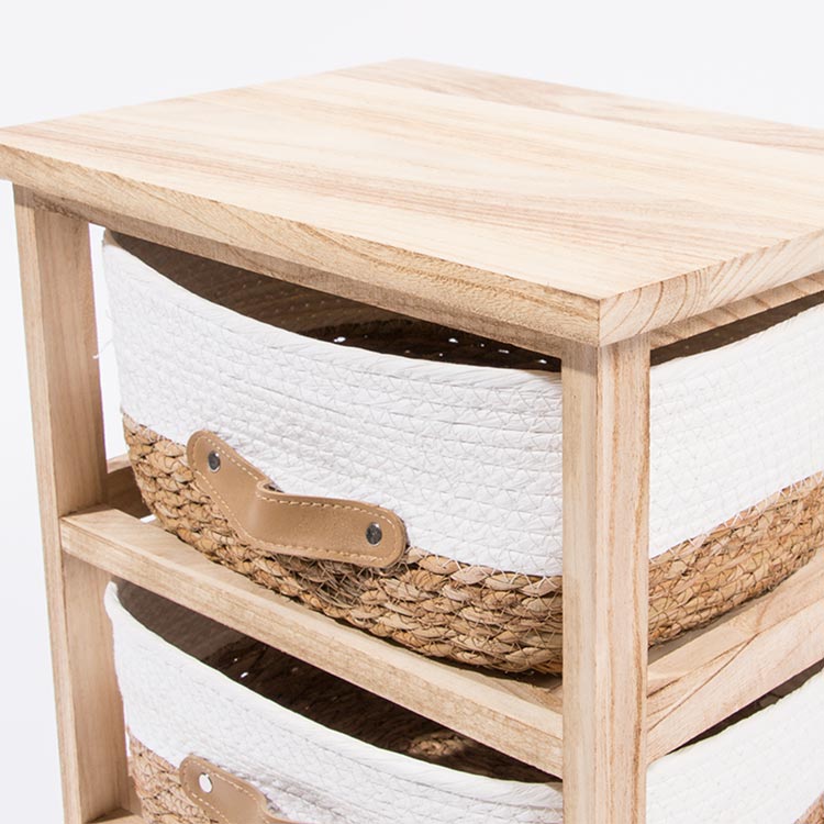 Material: Estrutura: 100% Madeira de Paulownia. Cestos: Corda de Algodão e Ervas Marinhas (Seagrass)